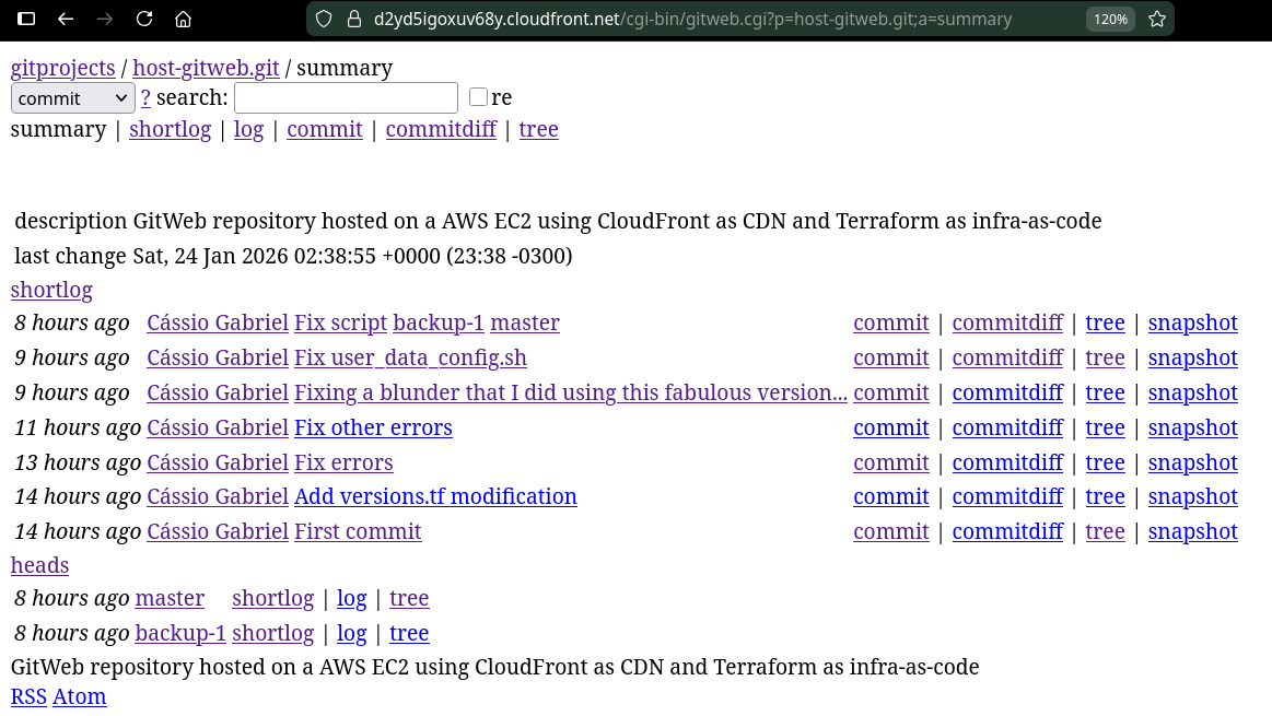 - Expor o GitWeb exclusivamente via CloudFront (HTTPS);