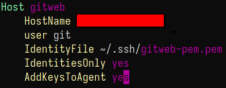 Para facilitar a utilização do git junto ao servidor, como também para separar logicamente minhha conexão a este ou outros repositórios git remotos, configurei no arquivo ~/.ssh/config as especificações de conexão ao repositório remoto aqui discutido: